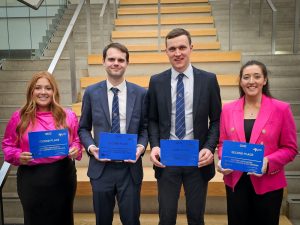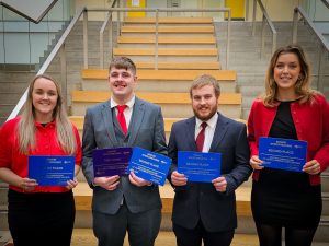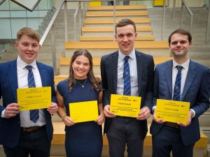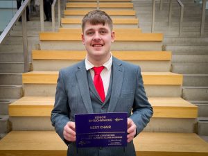 Eventually after much deliberation the judges agreed on their final standings. The winners of our National Senior Speechmaking are Carluke Pink. They impressed across the board with their debate on the topic ‘It is too difficult and too expensive to take up sport’. All of the team members scored highly with Proposer Mhairi Hall taking the title of Best Individual Speaker. Close behind the Carluke team were second-place Harray with their health-conscious talk on Takeaways, this debate was well chaired by Aidan Nicolson who was awarded Best Chair Outwith the Winning Team’. Only Five Sixths of a point separated Harray with our third placed team Carluke Blue. They complimented the fine display of their clubmates in pink as they delivered their own well-balanced debate on the statement that ‘The UK has gone pet‑mad’. Their debate saw some witty back and forth with team members Jack Young and Christina Young picking up best Opposer and Arbiter Outwith the Winning team respectfully. The final individual prize went to Andrew Sinclair of Halkirk for best Proposer Outwith the Winning team. A brilliantly composed and confident display from the sixteen-year-old, what a start to his senior speechmaking career! Well done once again to all the competitors and to our winners Carluke Pink who not only take home the trophy but also the grand prize of a trip to Canada to attend/ compete in the Canadian Young Speakers for Agriculture.