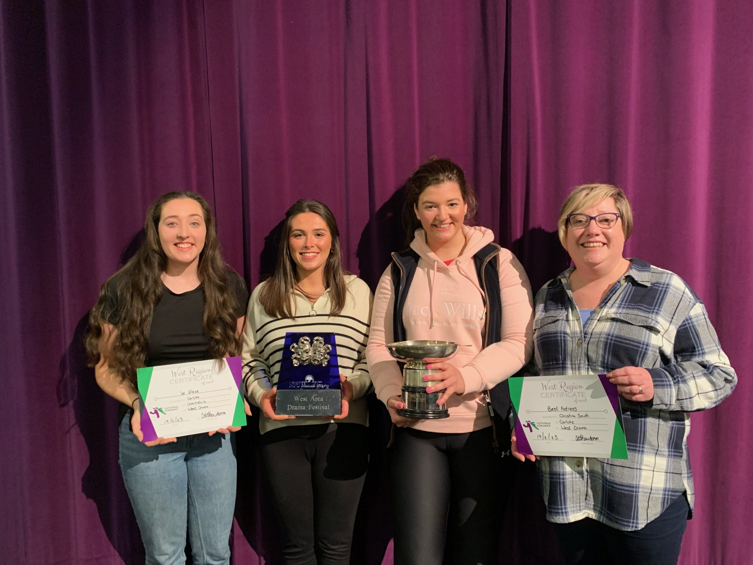 On Sunday 19th February the West Region headed to The Biggar Corn Exchange Theatre where three teams performed for the the chance to win the NFU Mutual Trohpy. All three teams put on fantastic performances with 9 new performers amongst them. A special thank you must go to our adjudicator for the evening Mrs Shirley Craig. The results are as follows: