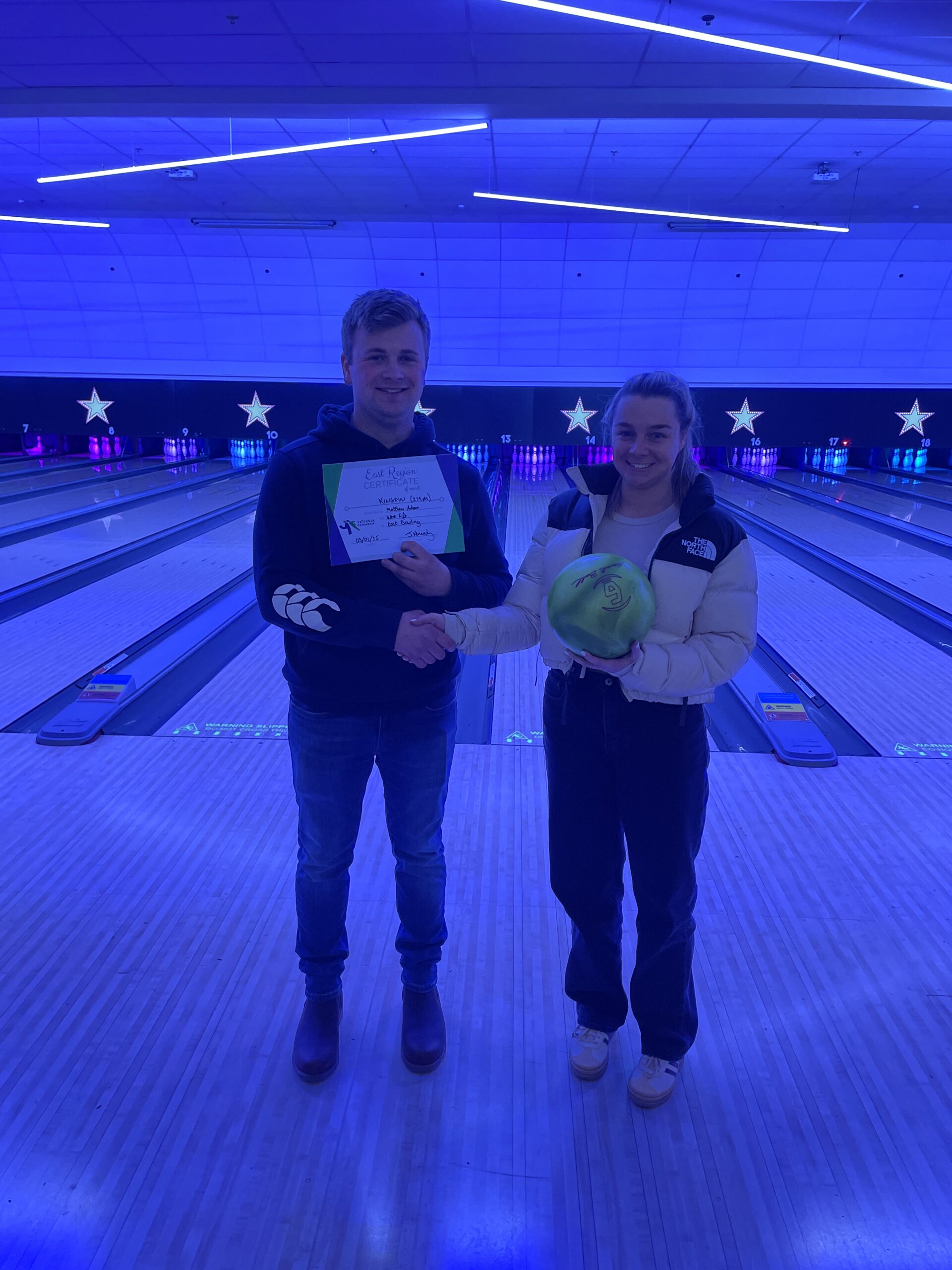 Thanks must go to East Chair, James and East Vice Chair Lucy who kept the competition running so smoothly and to Hollywood Bowling Alley for being so accommodating. Good luck to all the teams going on to the National Final in February.